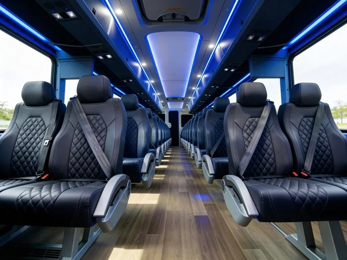 +Every vehicle in our fleet can include comfortable, high-back reclining seats and climate control to keep your group cool in the coastal California heat. Minibuses often feature overhead monitors, PA systems, and WiFi-perfect for quick trips through Ventura or Santa Barbara County. Full-size charter buses include undercarriage luggage bays, ADA-accessible lifts (available upon request), and onboard restrooms, making them ideal for long-distance travel to Los Angeles or San Diego. Sprinter vans offer easy access, leather seating, and USB charging ports, while party buses come equipped with wraparound seating, color-changing LED lights, and premium sound systems. You can customize your rental with options like power outlets and touchscreen controls-just tell us what you need when you call.